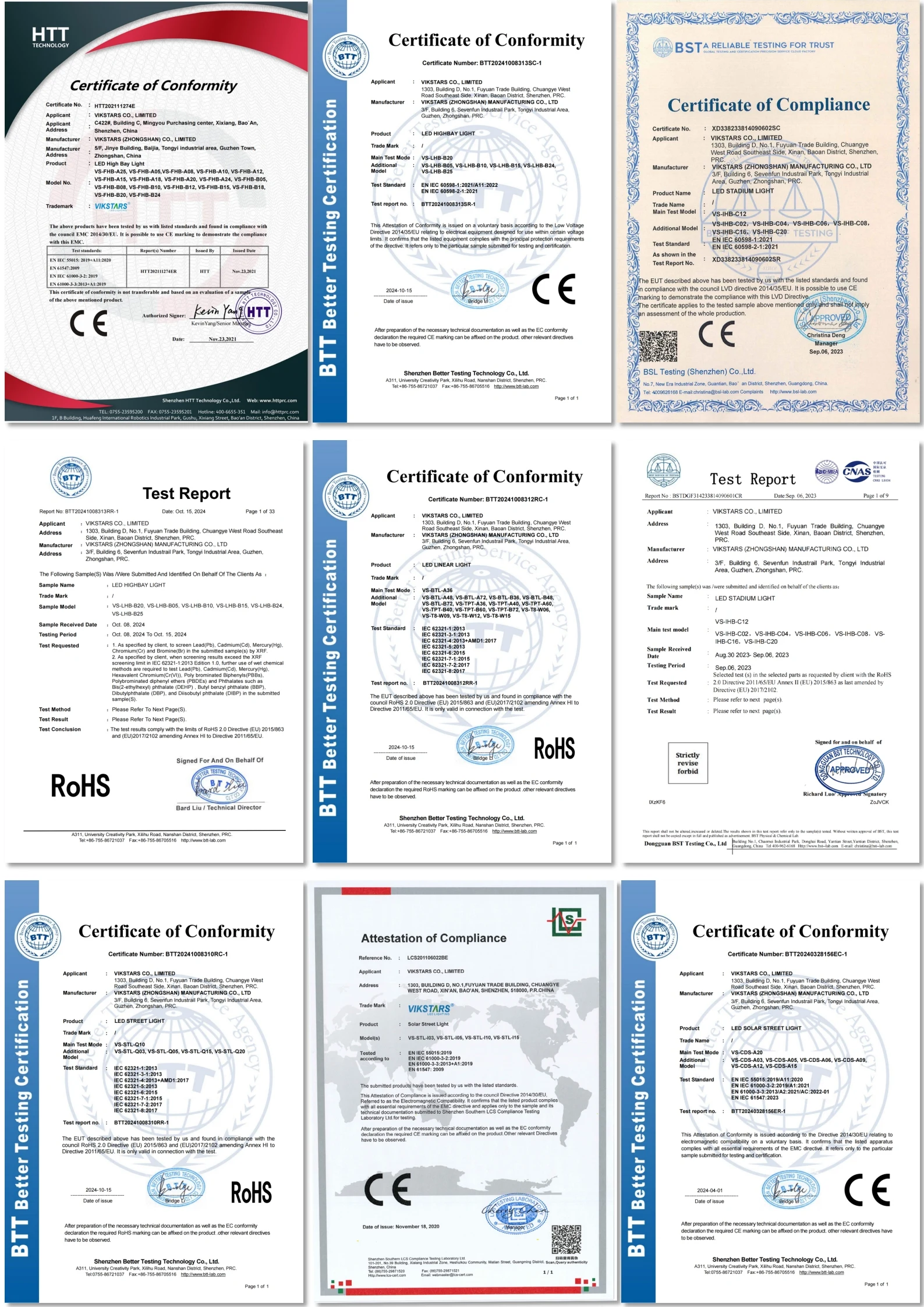 VIKSTARS CO., LIMITED was established in 2013, has been committed to the application research, products development, manufacture and sales for LED lighting fixtures. It has successively passed a series of quality, environmental management system, and enterprise intellectual property management system certifications like lS09001 and lS014000. Our main products cover outdoor and indoor lighting, such as LED Street Light, LED UFO High Bay, LED Stadium Light, LED Flood Light, LED Garden Light, LED Gas Station Light, LED Linear High Bay, LED Office Light, LED Panel Light, All are certified by NOM / CE / ETL/ TUV / PSE /ROHS. Each year we spend tens of thousands US dollars in certification. VIKSTARS prefers to concentrate on customers’ requirement and new products development. By updating solutions for current products, we can keep competitive in the market. Developing high quality new products at low cost helps to establish long term business relationship with customers. We ONLY focus on OEM & ODM customers which help us pay more attention to them in the field of fast delivery, great prices, good terms, trust and honest services etc.. |